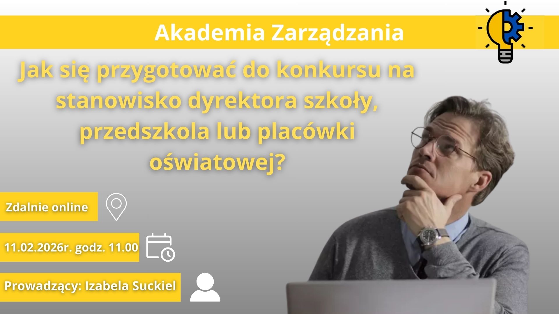 Planujesz start w konkursie na stanowisko dyrektora szkoły, przedszkola lub placówki oświatowej? A może ubiegasz się o kolejną kadencję i chcesz zwiększyć swoje szanse na sukces? To szkolenie zostało stworzone z myślą o osobach, które chcą świadomie, profesjonalnie i skutecznie przygotować się do konkursu.
